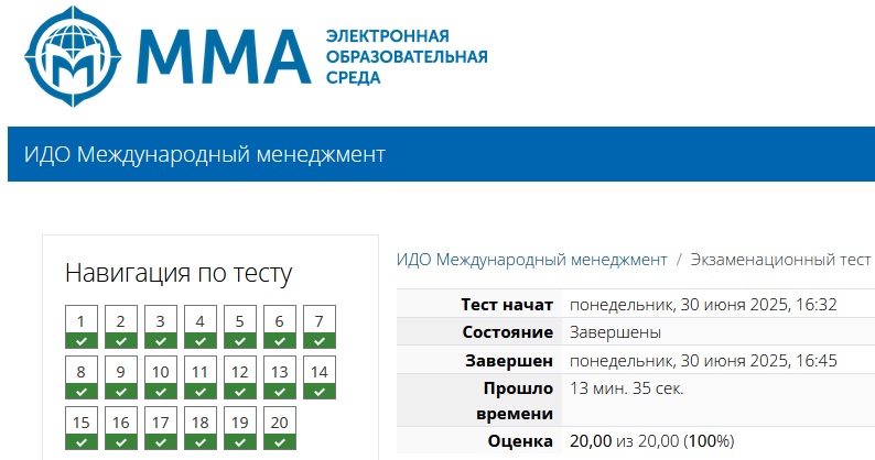 | Ответы на тест из курса ММА: Международный менеджмент. Вопросы обновлены в 2025 г. Всего 27 вопросов. Результат сдач: 100%.