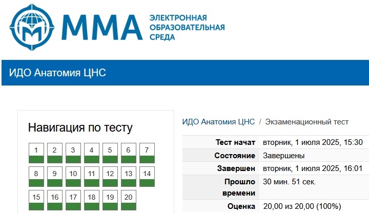 | Ответы на тест из курса ММА: Анатомия ЦНС. Всего 49 вопросов. Результат сдач: 95-100%.