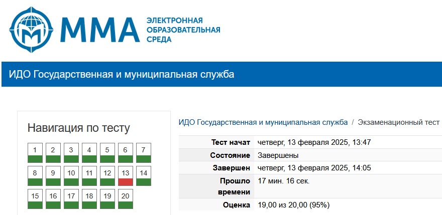 Ответы на тест из курса ММА: Государственная и муниципальная служба.