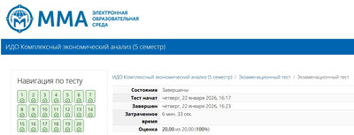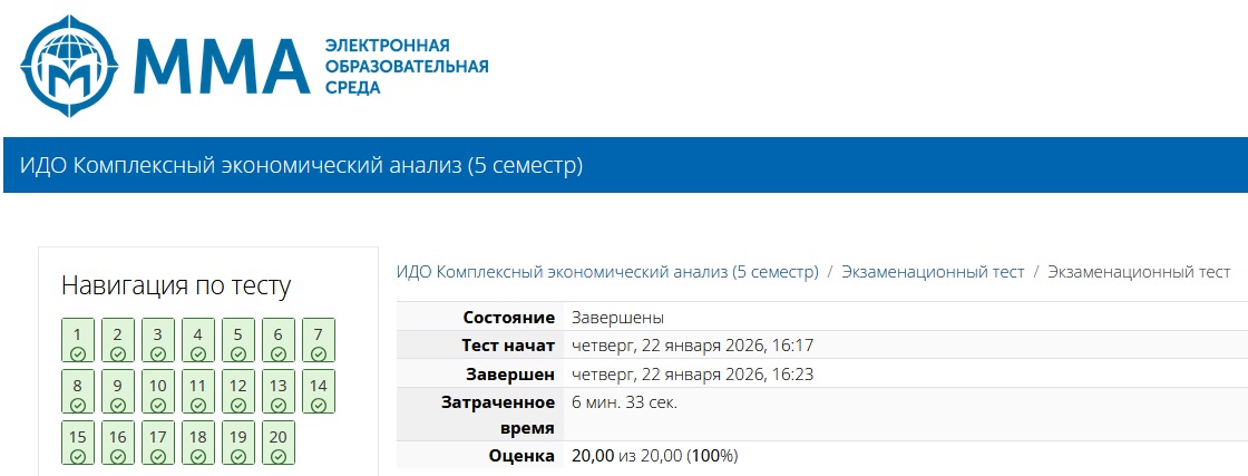 | Ответы на тест из курса ММА: Комплексный экономический анализ (2026 г.). Всего 32 вопроса. Результат сдач: 100%.