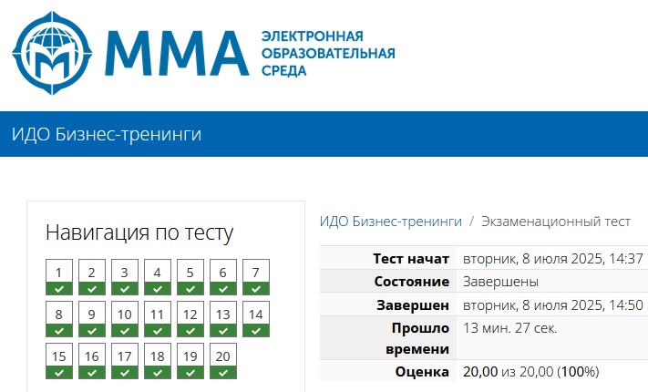 | Ответы на тест из курса ММА: Бизнес-тренинги. Всего 41 вопрос. Результат сдачи: 100%.