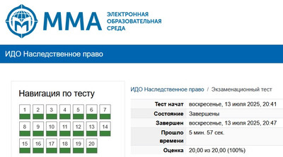 | Ответы на тест из курса ММА: Наследственное право. Всего 34 вопроса. Результат сдачи: 100%.