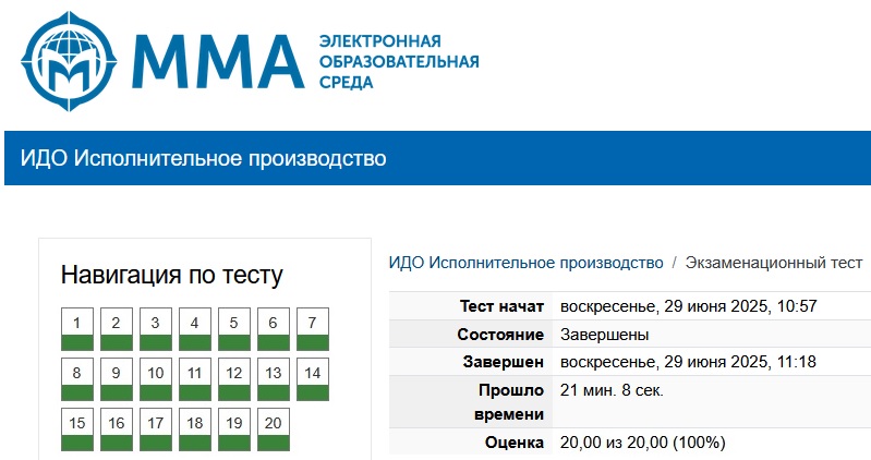 | Ответы на тест из курса ММА: Исполнительное производство. Всего 41 вопрос. Результат сдач: 100%.