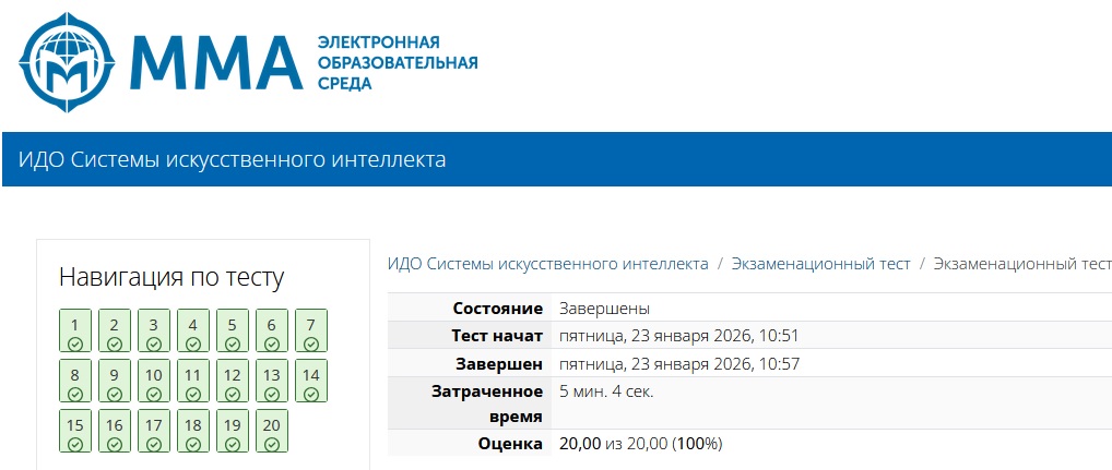 Ответы на тест из курса ММА: Системы искусственного интеллекта.
